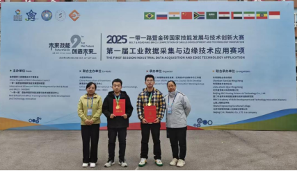 金秋十月,捷报频传。在刚刚落幕的2025一带一路暨金砖国家技能发展与技术创新大赛第一届工业数据采集与边缘技术应用赛项中,天津工业职业学院工业与信息化系教师付晓艳、唐继英带领工业互联网23-1班陈海峰、电气23-5班李旺普组成的参赛团队,凭借扎实的技术功底、默契的团队协作与稳定的临场发挥,从来自全国的100余支参赛队伍中脱颖而出,一举摘得一等奖桂冠,为学院再添殊荣。